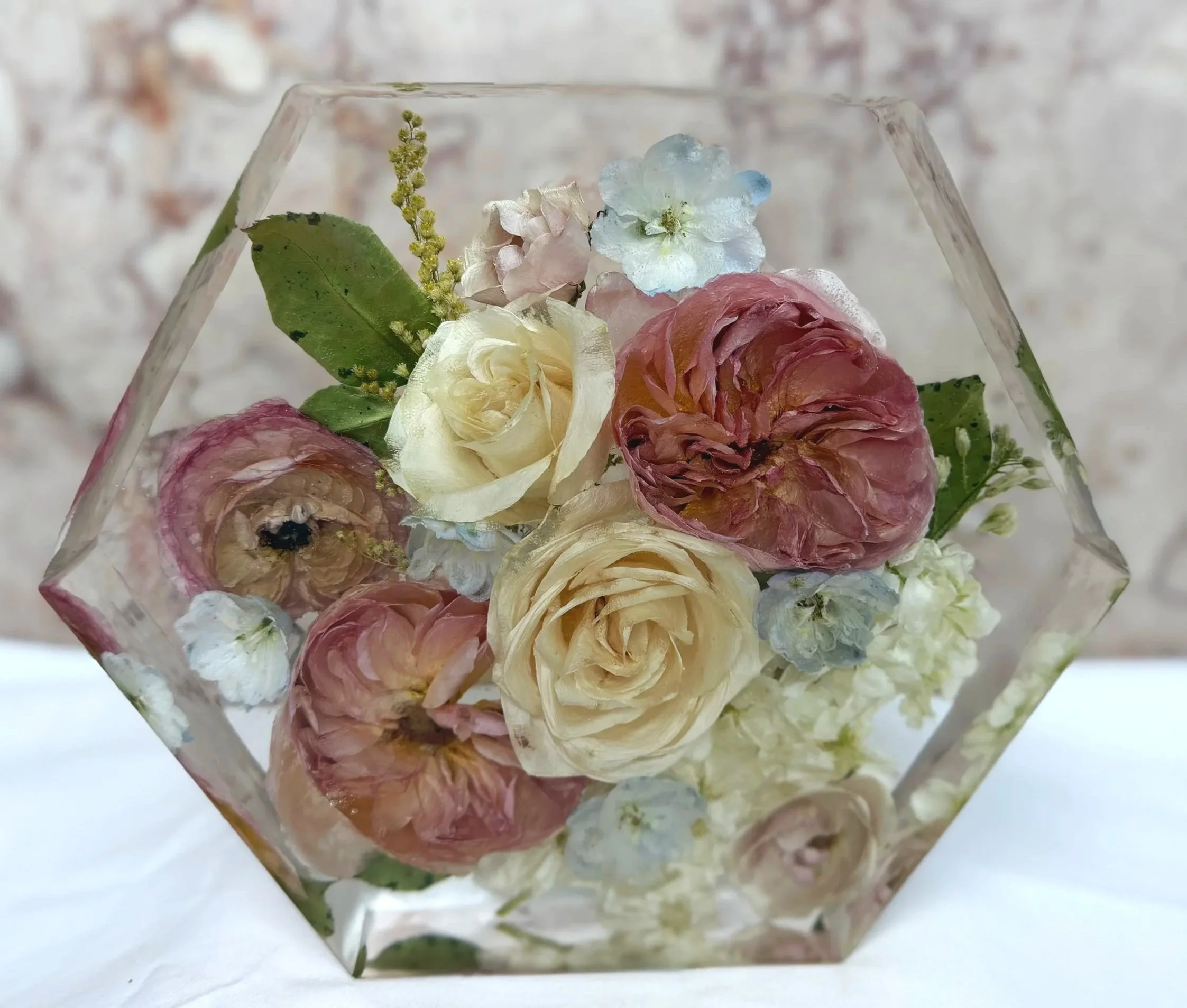 Each resin flower preservation piece is a custom creation, designed to honor your unique story. Our commitment to quality ensures that your heirloom will remain vibrant for years to come.